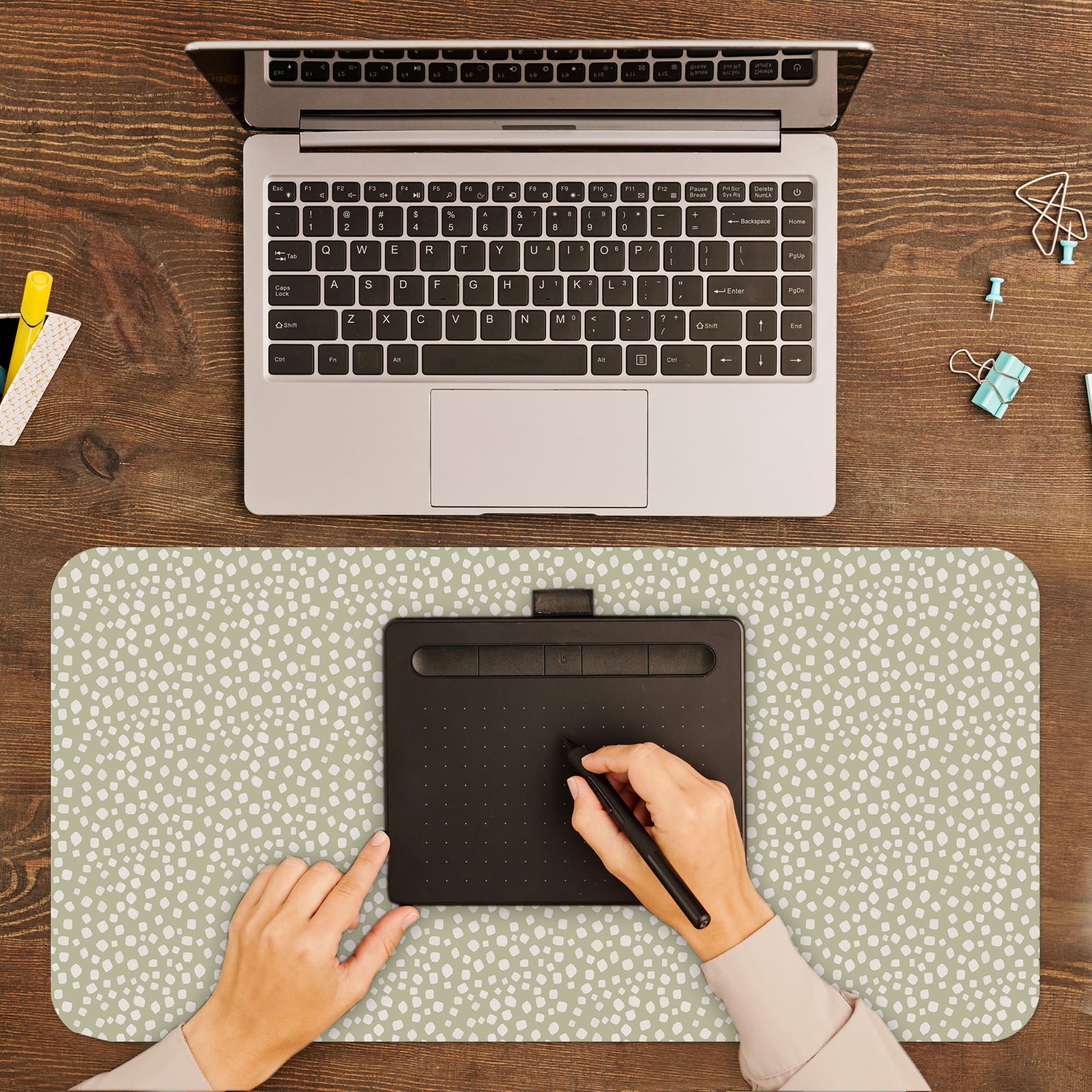 Infidu Organic Dot Pattern Desk Pad Sage Green Minimal Work Surface – mpd642