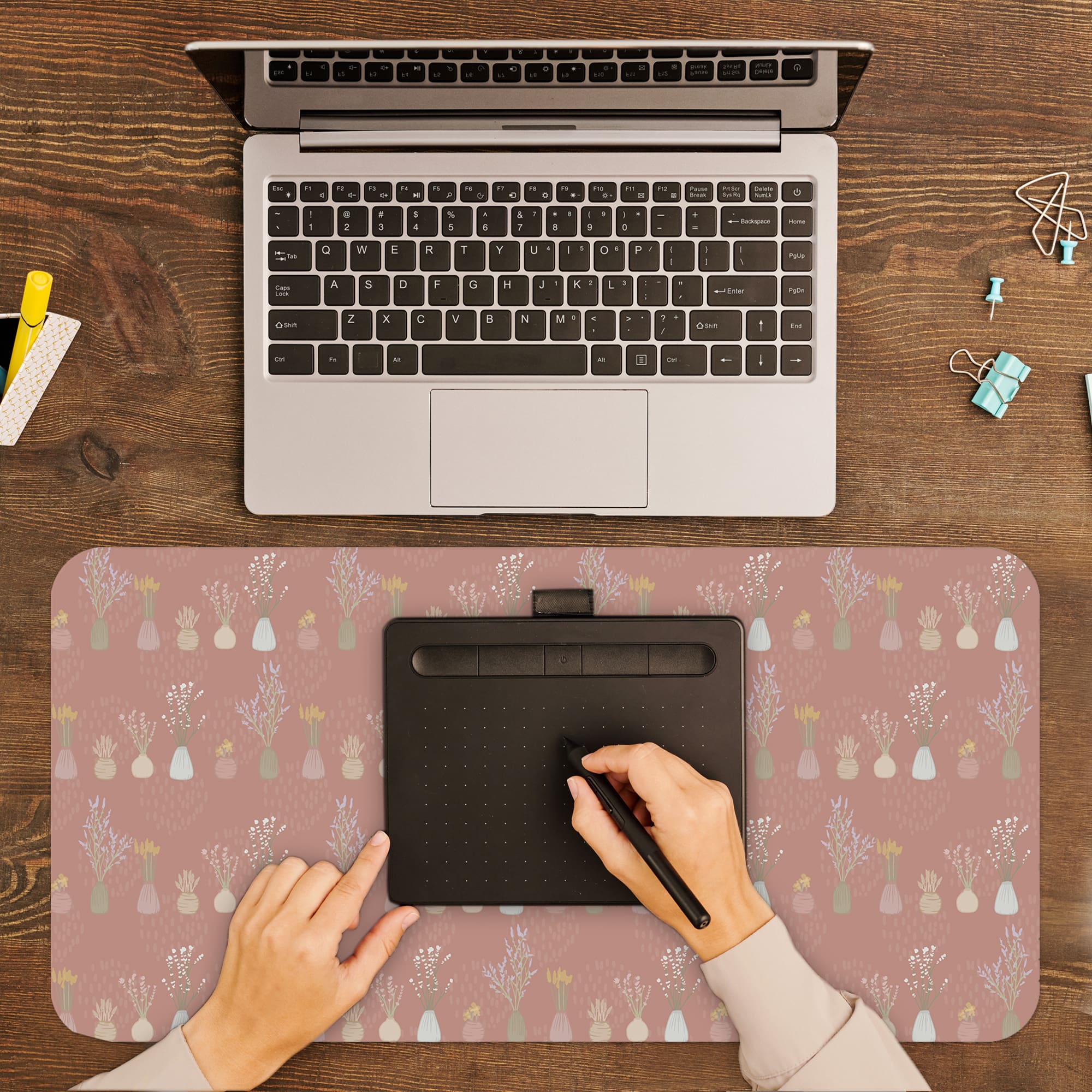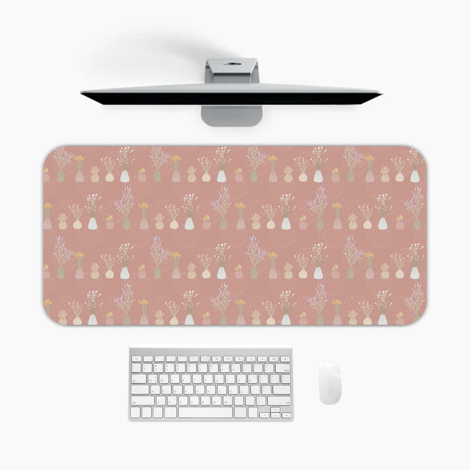 Add a soft and cozy touch to your workspace with this Pastel Floral Pattern Desk Pad. The design features small floral and botanical elements arranged in a neat repeating pattern, set against a warm dusty pink background. The subtle details create a calm and charming visual appeal.