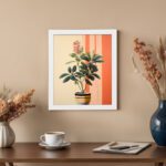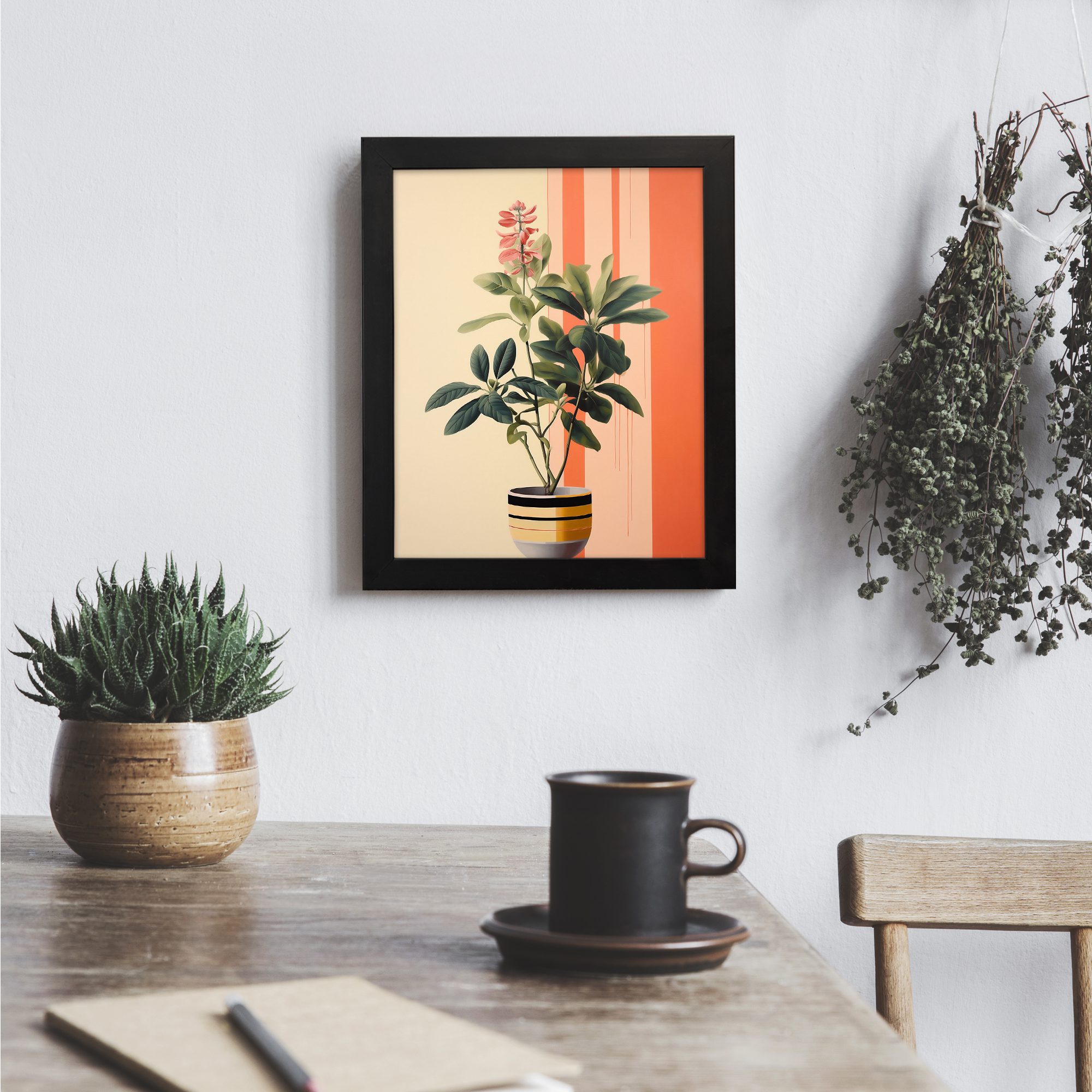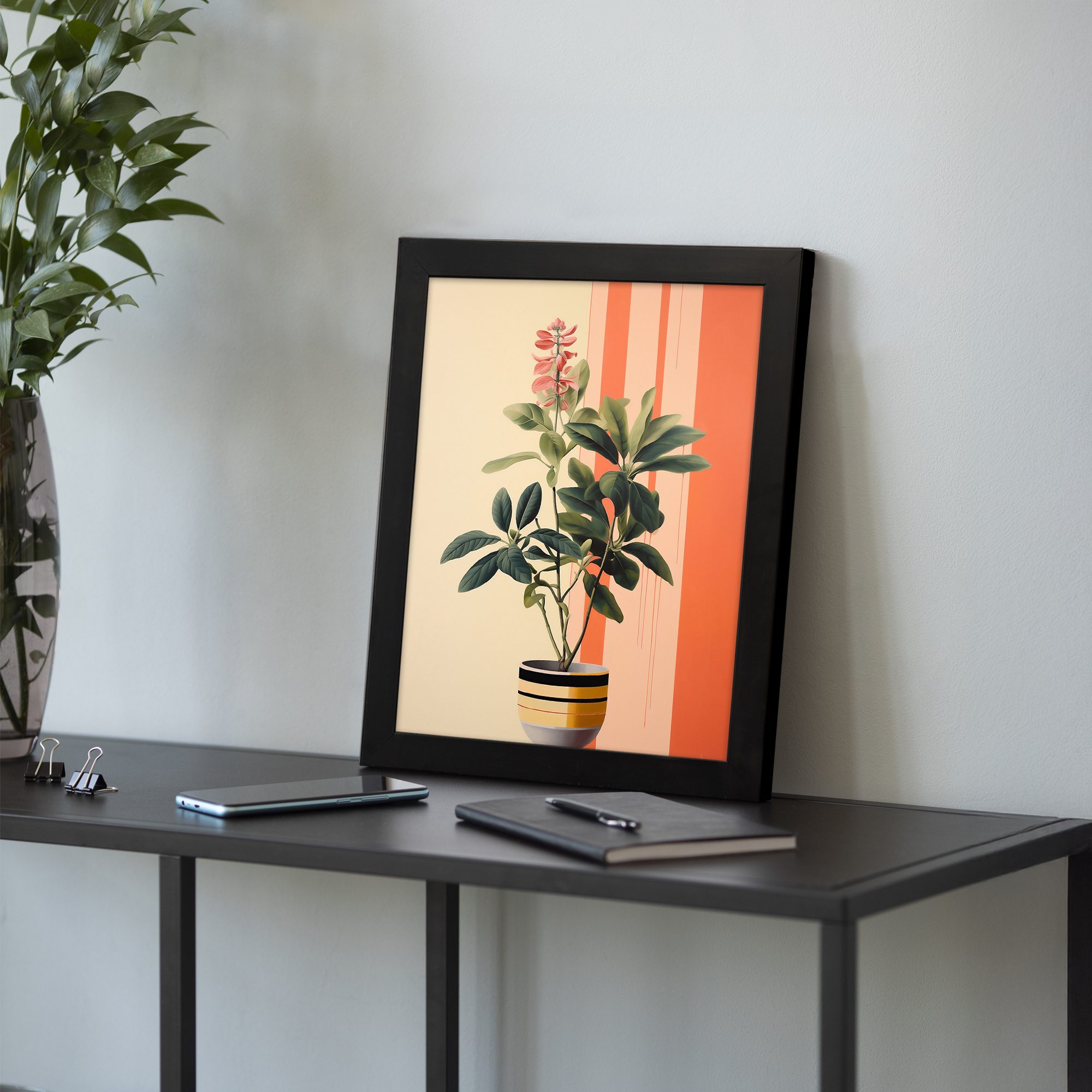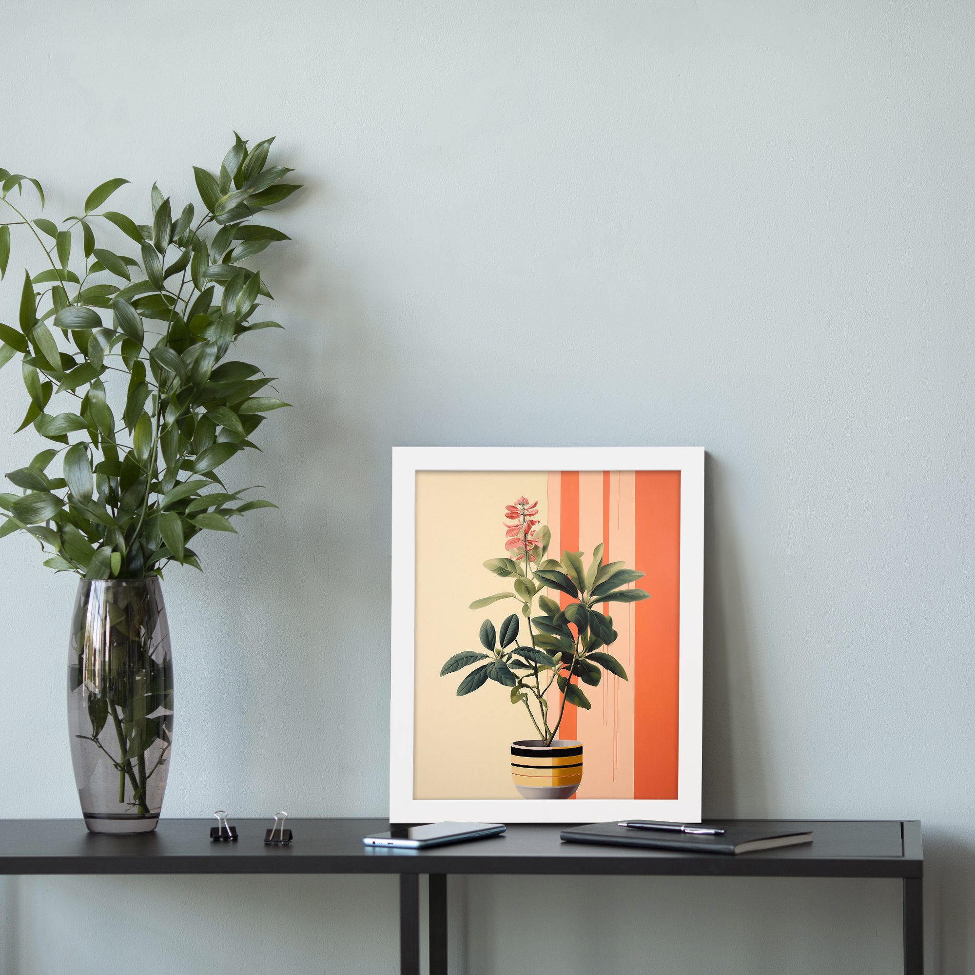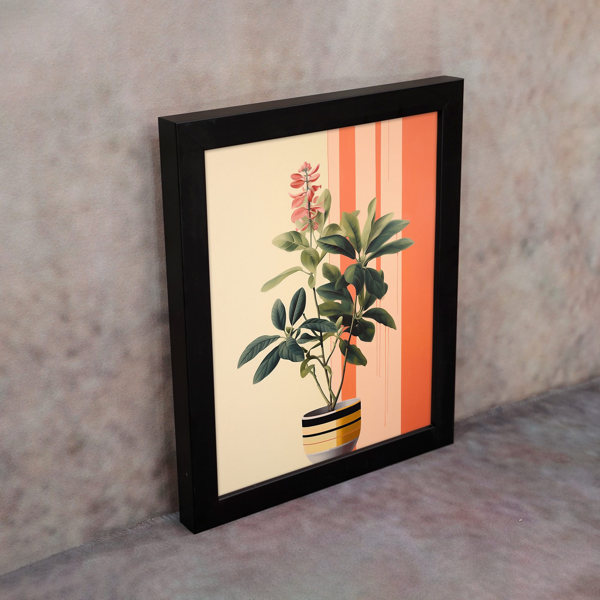 Bring a warm and stylish feel to your home with this Kotart aesthetic modern wall art. This artwork features a beautiful potted plant with soft green leaves and subtle floral touches, set against a clean background with warm vertical stripes. The design creates a perfect balance of nature and modern style.