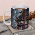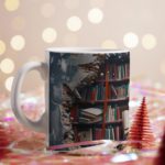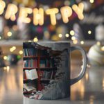 This stylish mug features a charming and literary-inspired design, perfect for book lovers. The intricate details of the stacked books and the rustic wooden shelf create a visually appealing and nostalgic image.