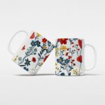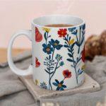 Infidu Premium Mug With Leaves And Multi Color Flowers – White Background – Microwave Friendly – Model SK-md75