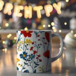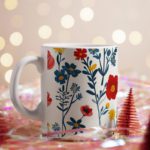 This stylish mug features a captivating design of leaves and colorful flowers against a white background, bringing a touch of nature to your kitchen. The intricate details and vibrant colors will create a cheerful and uplifting atmosphere.