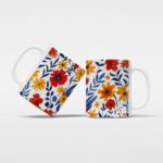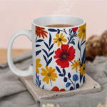 Infidu Premium Mug With Leaves And Multi Color Flowers – White Background – Microwave Friendly – Model SK-md77