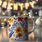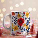 This stylish mug features a captivating design of leaves and colorful flowers against a white background, bringing a touch of nature to your kitchen. The intricate details and vibrant colors will create a cheerful and uplifting atmosphere.
