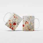 Infidu Premium Mug With Leaves And Multi Color Flowers – White Background – Microwave Friendly – Model SK-md93