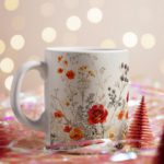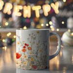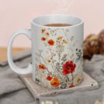 This stylish mug features a beautiful nature-inspired design with leaves and colorful flowers against a white background. The vibrant colors and intricate details will create a cheerful and uplifting atmosphere in your kitchen.