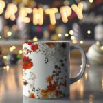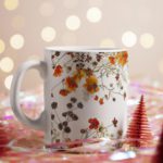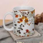 This stylish mug features a beautiful nature-inspired design with leaves and colorful flowers against a white background. The vibrant colors and intricate details will create a cheerful and uplifting atmosphere in your kitchen.