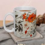 Infidu Premium Mug With Leaves And Multi Color Flowers – White Background – Microwave Friendly – Model SK-md96