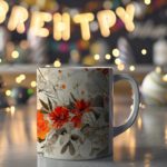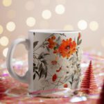 This stylish mug features a beautiful nature-inspired design with leaves and colorful flowers against a white background. The vibrant colors and intricate details will create a cheerful and uplifting atmosphere in your kitchen.