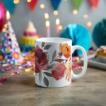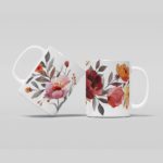 Infidu Premium Mug With Leaves And Multi Color Flowers – White Background – Microwave Friendly – Model SK-md164