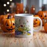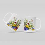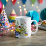 This stylish mug features a beautiful nature-inspired design with leaves and colorful flowers against a white background. The vibrant colors and intricate details will create a cheerful and uplifting atmosphere in your kitchen.