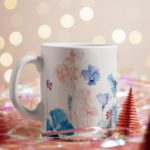 This stylish mug features a captivating design of leaves and colorful flowers against a white background, bringing a touch of nature to your kitchen. The intricate details and vibrant colors will create a cheerful and uplifting atmosphere.