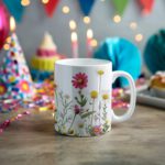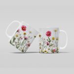 Infidu Premium Mug With Multi Color Flowers – White Background – Microwave Friendly – Model SK-md157