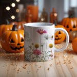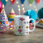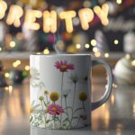 This stylish mug features a beautiful nature-inspired design with leaves and colorful flowers against a white background. The vibrant colors and intricate details will create a cheerful and uplifting atmosphere in your kitchen.