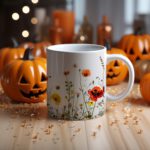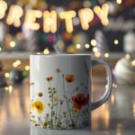 This stylish mug features a beautiful nature-inspired design with leaves and colorful flowers against a white background. The vibrant colors and intricate details will create a cheerful and uplifting atmosphere in your kitchen.