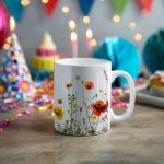 Infidu Premium Mug With Multi Color Flowers – White Background – Microwave Friendly – Model SK-md159