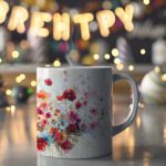 This stylish mug features a captivating design of leaves and colorful flowers against a white background, bringing a touch of nature to your kitchen. The intricate details and vibrant colors will create a cheerful and uplifting atmosphere.