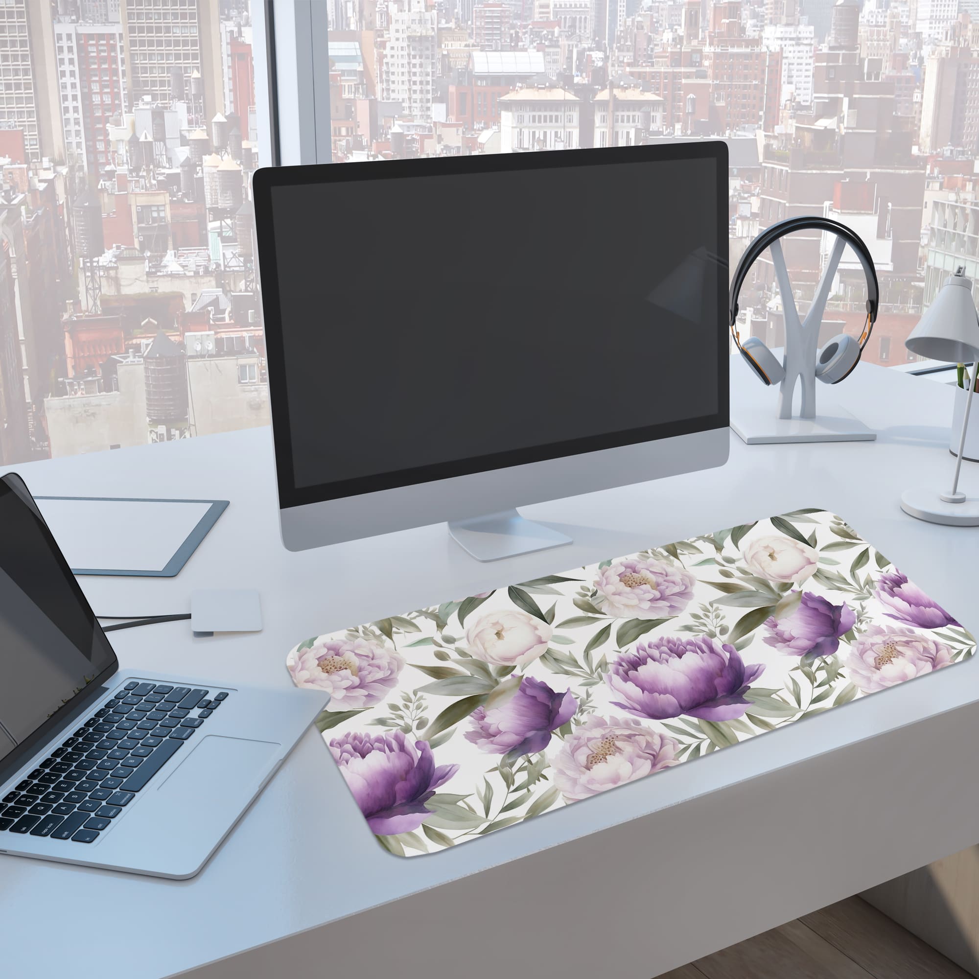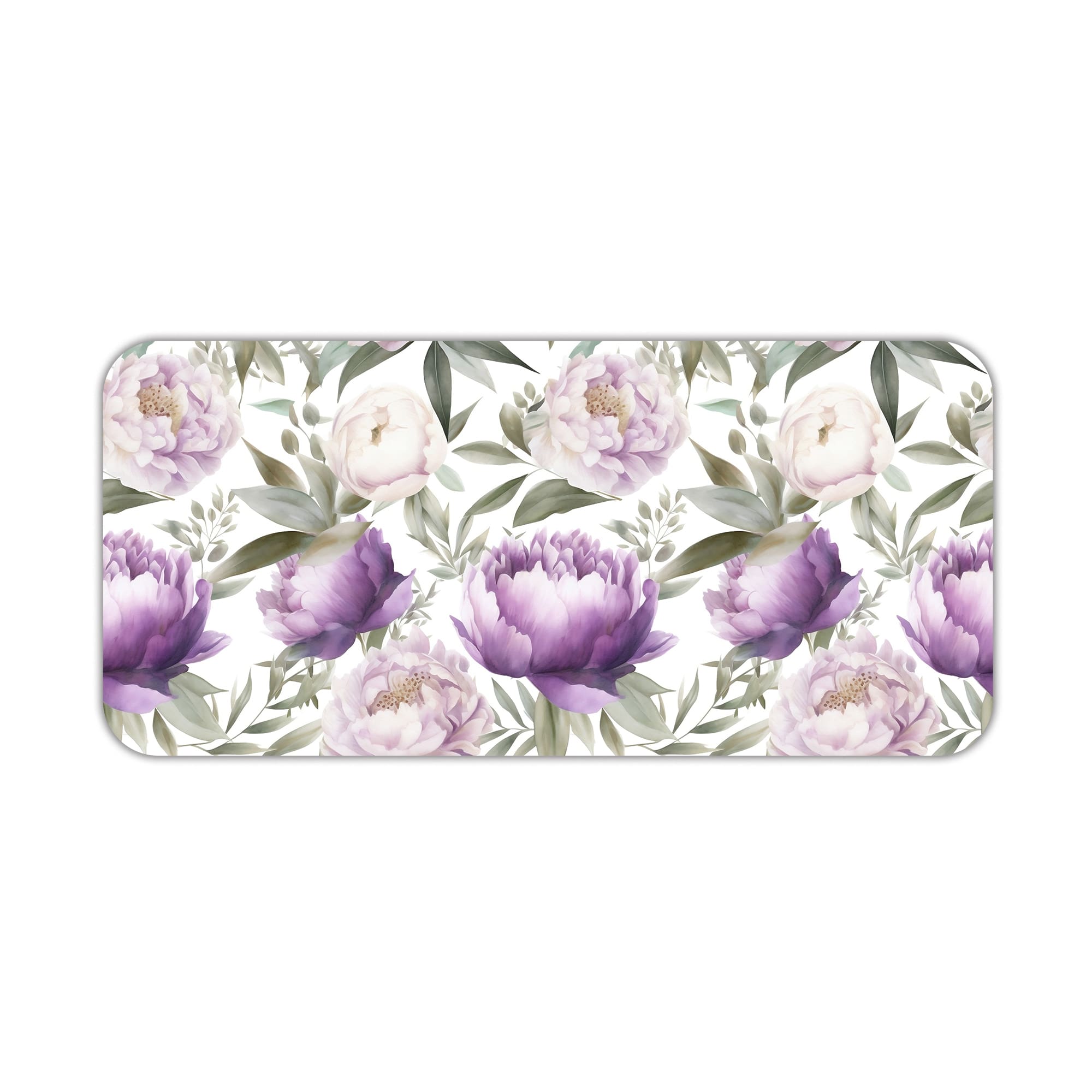 Enhance your workspace with this Purple Peony Floral Desk Pad featuring a soft and elegant botanical design. The artwork showcases beautifully detailed peony flowers in gentle purple shades, combined with light green leaves for a fresh and natural look.