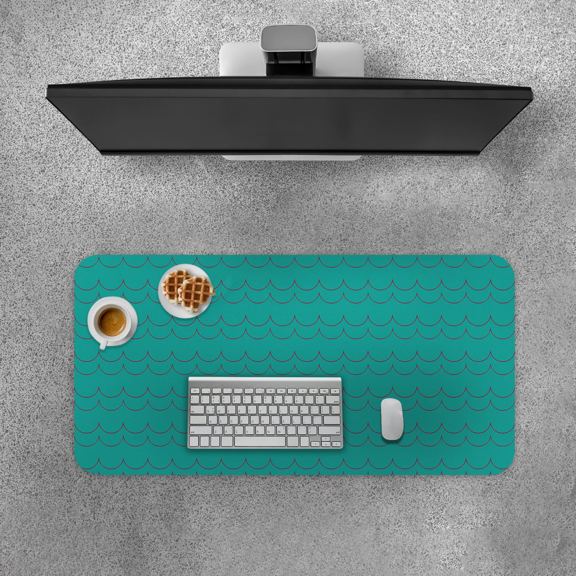Bring a clean and stylish look to your workspace with this Scallop Wave Desk Mat. The design features a repeating scallop wave pattern across a rich teal background, creating a balanced and modern visual texture.
