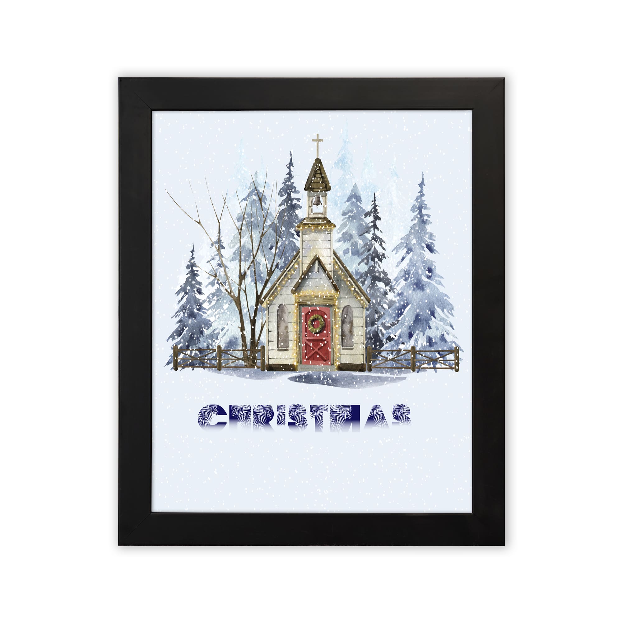 Infidu Snowy Chapel Art Serene Winter Scene with ‘CHRISTMAS’ A small chapel surrounded by snow-covered trees is the focal point of this serene winter scene. The artist uses mainly white and gray to capture a peaceful, snowy landscape. The word “CHRISTMAS” beneath the image adds a joyful touch. This artwork brings a tranquil holiday spirit to any space.