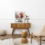 Inspired by impressionist painting art, the design uses smooth brush strokes and gentle color blending to capture the beauty of winter nature. The contrast of red leaves and white snow adds a unique and elegant touch to your decor.