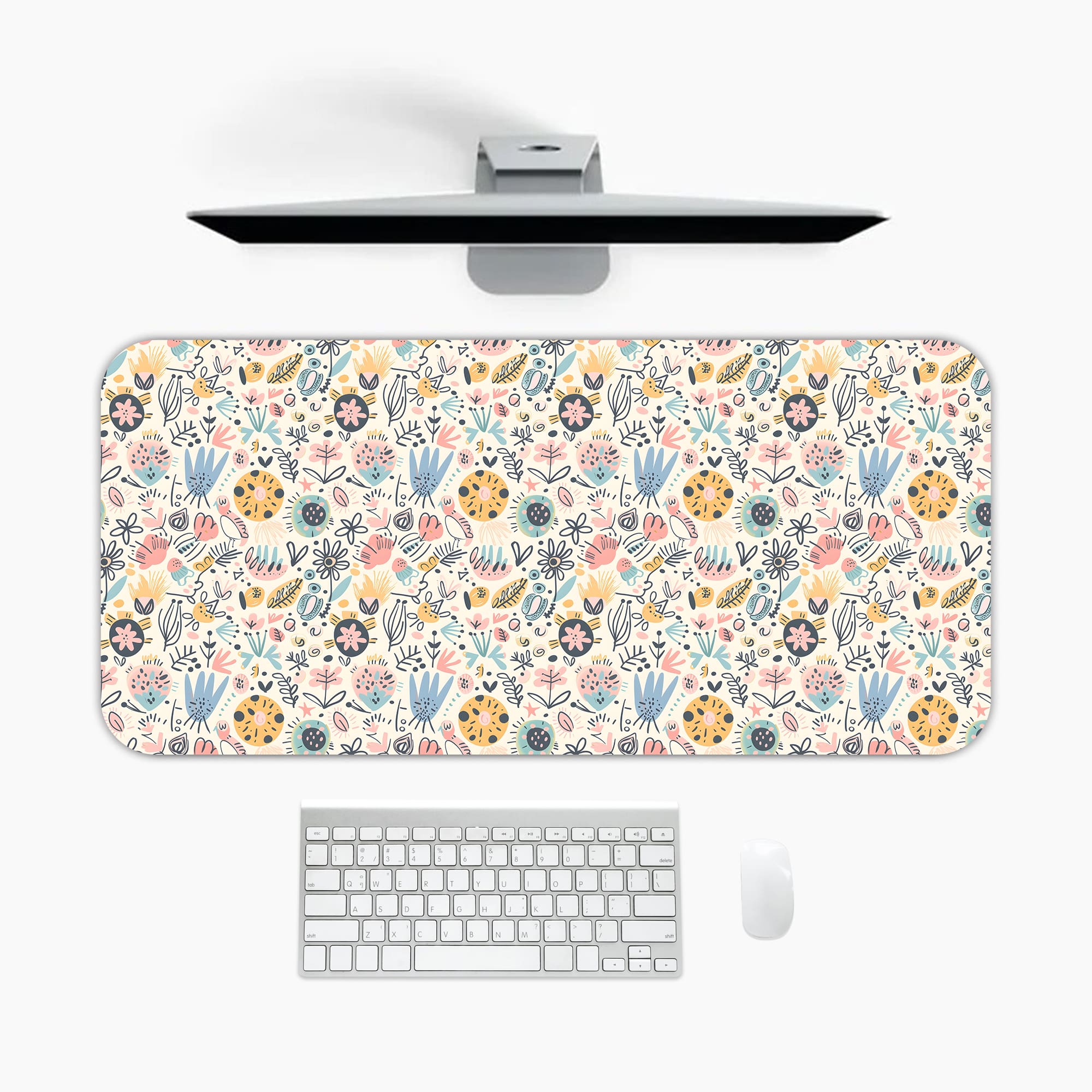 Transform your workspace with this Boho Floral Desk Pad featuring a detailed vintage garden pattern. The design includes a dense arrangement of hand-drawn flowers, leaves, and botanical elements in soft earthy tones, creating a warm and artistic aesthetic.