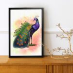 Using special floating frames, this artwork adds an extra touch of elegance to any space, creating a focal point that exudes the splendor of a peacock in a simple yet captivating manner.