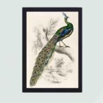 Infidu The Naturalists Library by Sir William Jardine (1836), a majestic male peafowl portrait in high resolution Reproduced Art V1-559