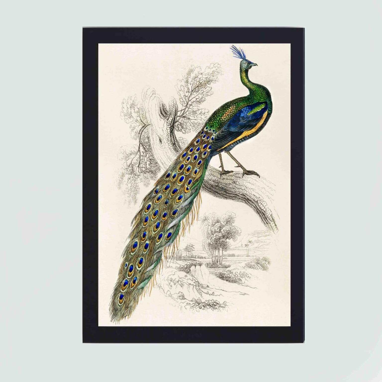 Introducing a one-of-a-kind vintage art print featuring The Naturalists Library by Sir William Jardine (1836), a majestic male peafowl portrait in high resolution Reproduced Art Original Artwork of 1800. Vintage art prints are a timeless and sophisticated addition to any home or office decor. These prints feature iconic artwork from past eras, showcasing the unique styles and techniques of the artists of the time. This print features a traditional style of artwork of the 18th century. Whether you’re looking to add a touch of elegance to your living room, create a focal point in your office, or find the perfect gift for the art lover in your life, our vintage art prints are sure to impress. Our vintage art prints are remastered from the original to ensure that the colors and details of the original artwork are captured perfectly. Our Museum quality vintage art prints can be easily printed and displayed in any space.